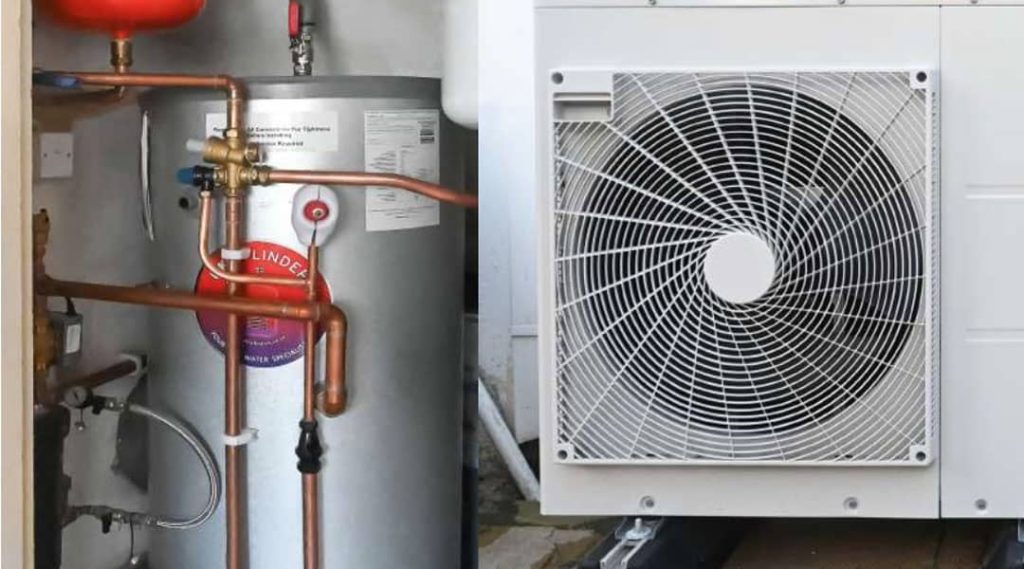 Replacement of old electric boiler and installation of new air source heat pump and hot water cylinder thanks to Home Upgrade Grant.