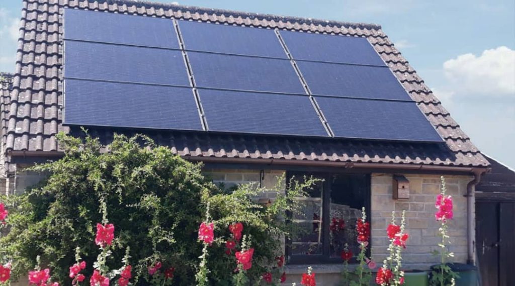 Installation of solar photovoltaic panels with battery storage, utilising Tesla and Eddi devices, alongside Daikin air-to-water heat pumps.